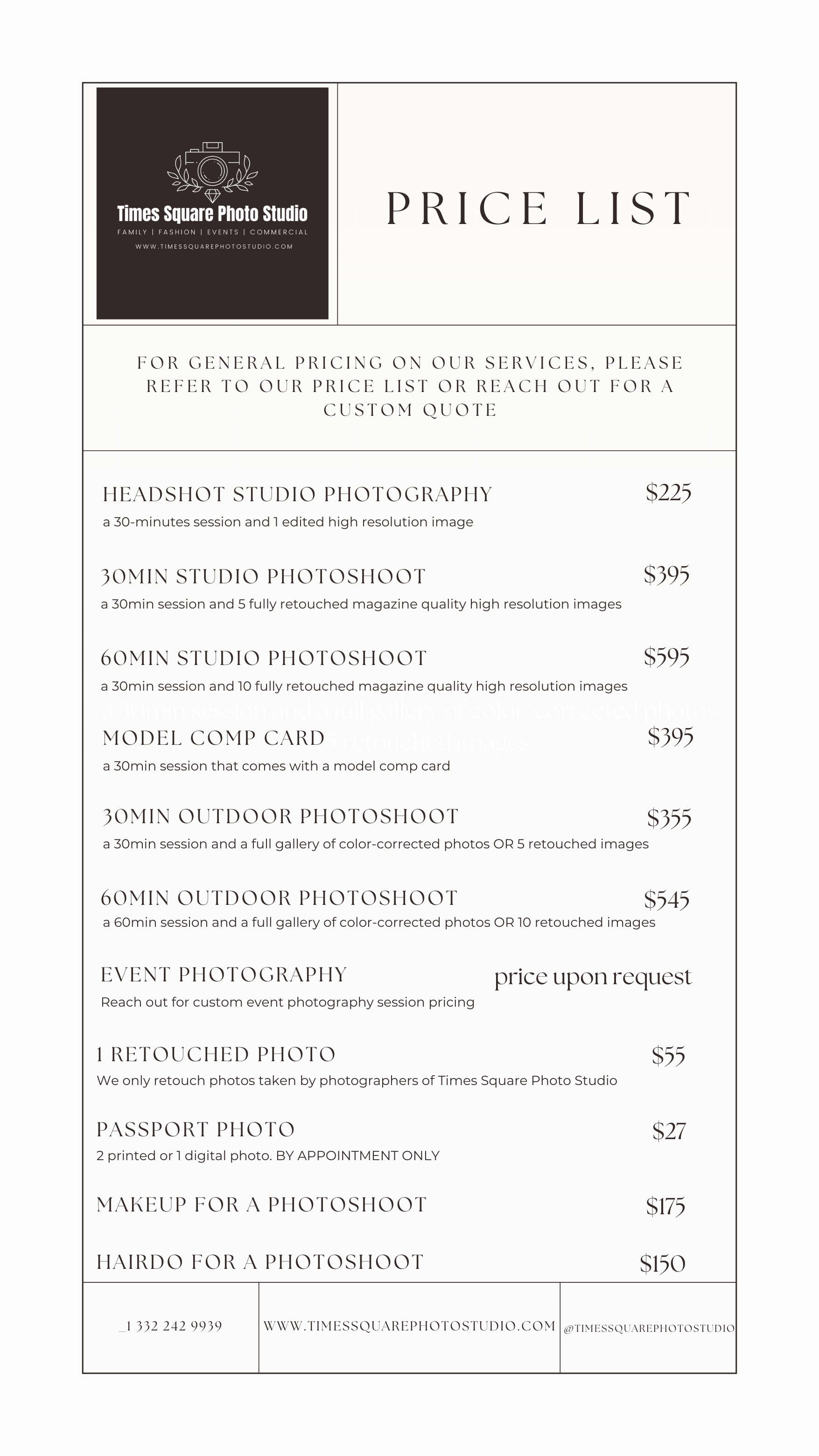 * These are general prices for our services. Please note that the final price may vary based on factors such as the number of participants, travel requirements, and other specifics.